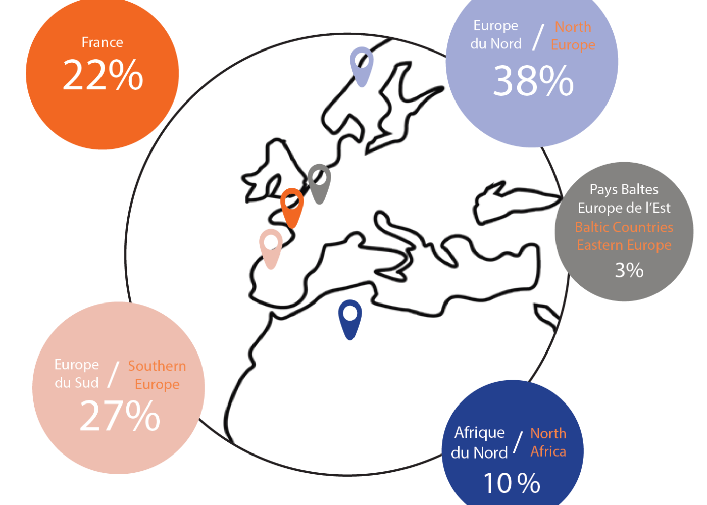 Le Port Charente Atlantique est un port de cabotage européen et Nord Afrique. 43% des marchandises sont originaires ou à destination de pays d’Europe du Nord, les autres partent ou arrivent d’Europe du Sud (18%), des pays Baltes (2%) ou encore du Maroc (9%). Le trafic vers d’autres ports français représente 28 %.